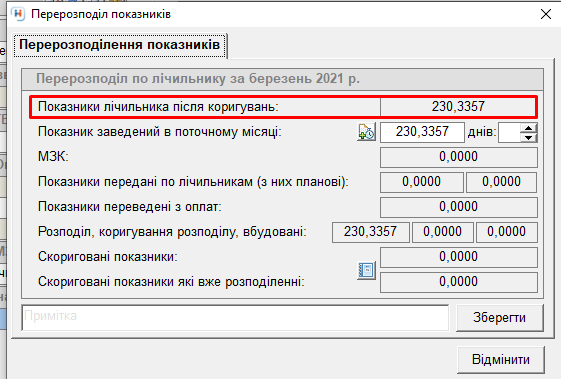 Після збереження, у полі "Показники лічильника після коригувань" буде відображено показник, на який скоригували;