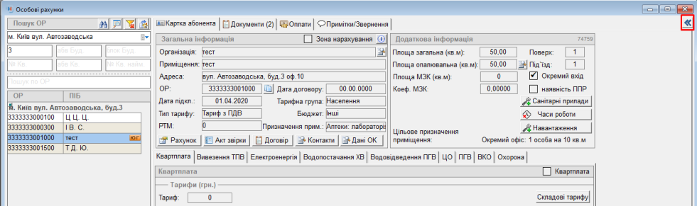 Відкрити необхідній Особовий рахунок: "Абонентський відділ" — "особові рахунки", знайти необхідний ОР, для прикладу: