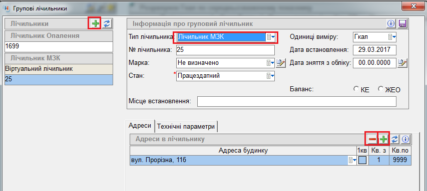 Створення будинкового лічильника МЗК та внесення по ньому показників