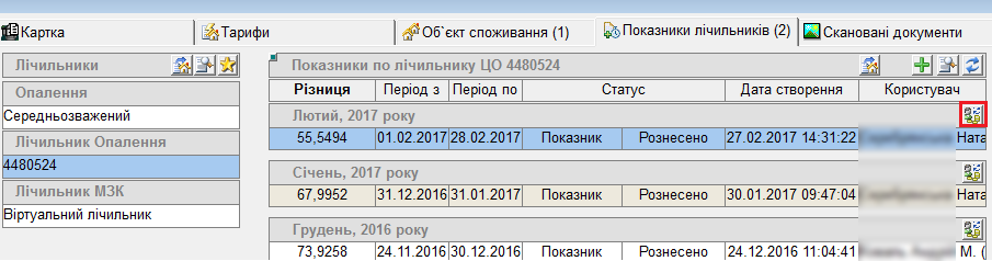 і у "Показниках по лічильнику" буде відображена нова строчка "Редагування-Перерозподіл", цей перерозподіл можна сторнувати (нажати кнопку мінус "-").
