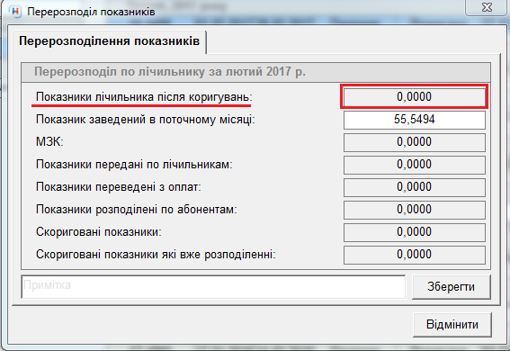 Після збереження, у полі "Показники лічильника після коригувань" буде нуль;