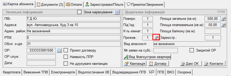 * у картці ОР нажати на кнопку "лупа" біля поля "Прожив.", відкриється вікно "Кількість проживаючих"