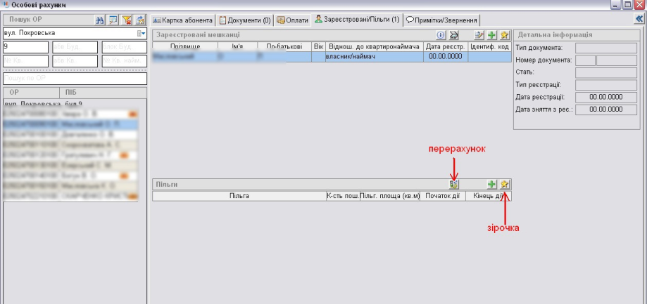 Якщо по мешканцю не відображається пільга то нажати на кнопку "зірочка" зправа в полі "Пільга".
