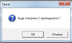 Після відповіді — ОК, буде надіслано повідомлення - "було створено проводки".