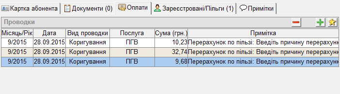 Вам необхідно для перерахунку за попередні періоди в розрізі кожного місяця занести інформацію за місяць розрахунку (що діяла ) (по ПГВ та ЦО): кількість проживаючих, об'єм що спожив абонент, тариф, кількість розповсюджень дії пільги (кількість пільговиків).