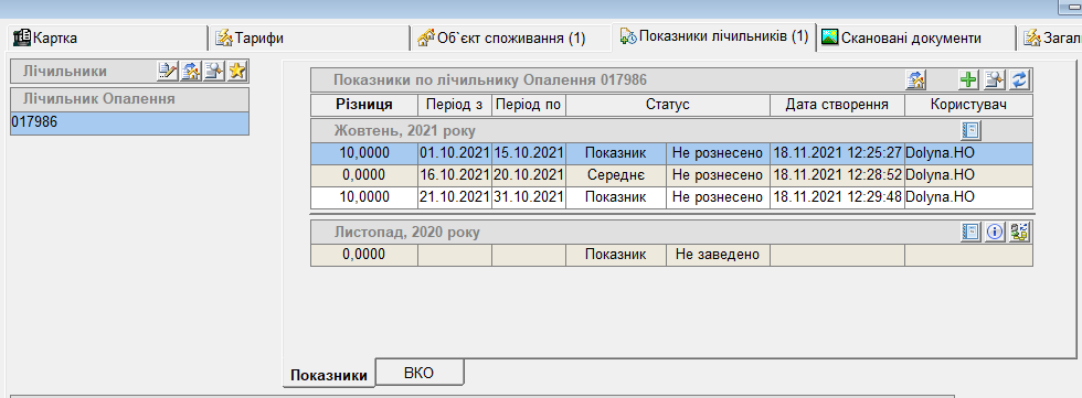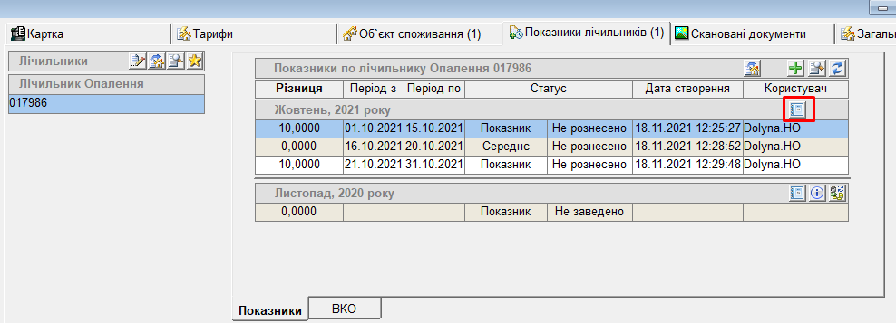 Можливо подивитись та роздрукувати відомість по заведеним показникам: