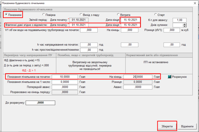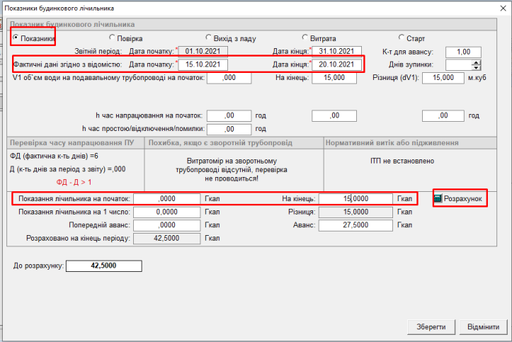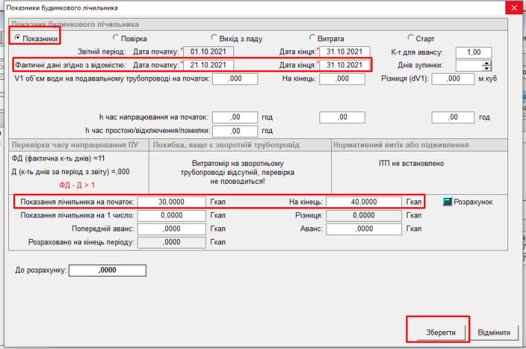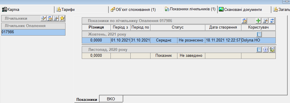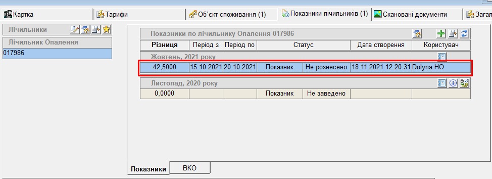 - натиснути “Розрахунок”, та кнопку “Зберегти”, буде відображено заведений показник: