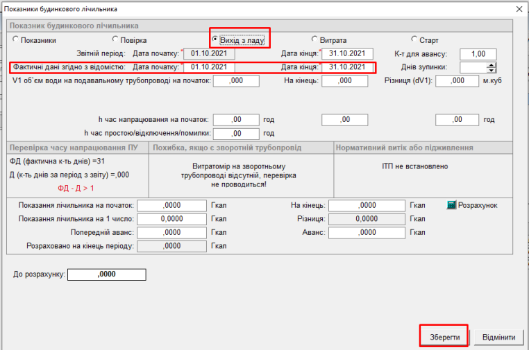 За період виходу з ладу буде нараховано середнє споживання.