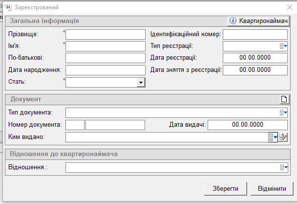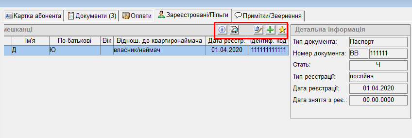 - нажати на кнопку "плюс" - додати/зареєструвати мешканця по даному ОР, відкриється вікно "Зареєстрований":