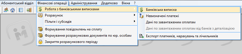 Також за допомогою меню - робота з банком — можна розглянути невизначені платежі та непроведені лічильники.