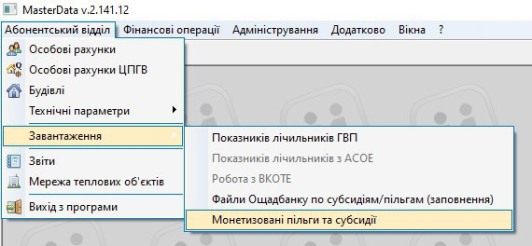 Відкриється вікно “Завантаження монетизованих субсидій та пільг”: