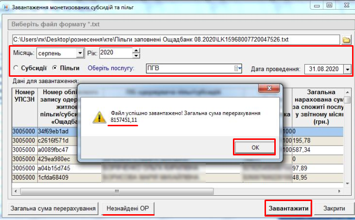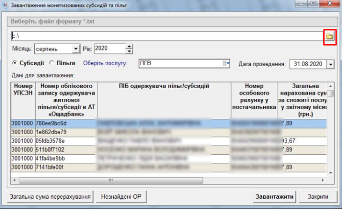 - вказати дату, яка вказана у файлі пільговиків або отримувачів субсидії