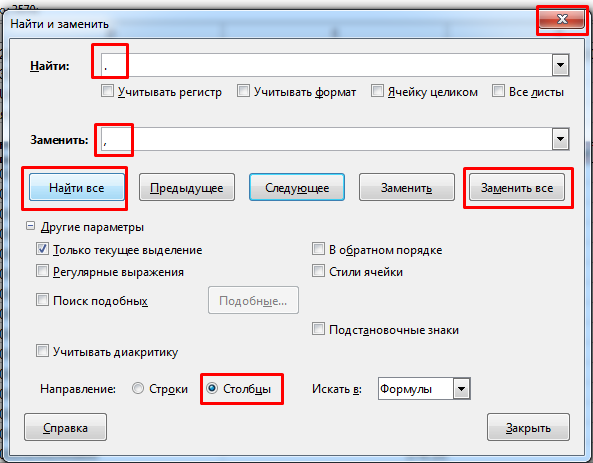 2. Далі у цій колонці потрібно замінити “крапки” на “коми”, для цього у меню вибираємо “Правка”, далі вибираємо пункт меню “Найти и заменить”: