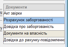 Розрахунок заборгованості - при виборі цього пункту відкриється вікно: