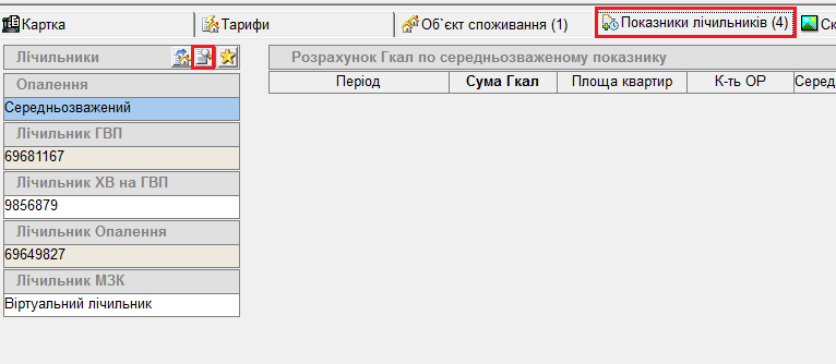 1) У меню перейти: Абонентський відділ — Будівлі, знайти потрібний будинок, і перейти на вкладку "Показники лічильників":