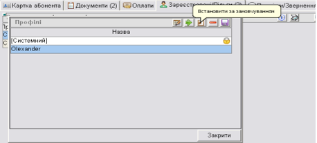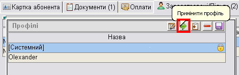- Якщо створено декілька профілів, з різними налаштуваннями вигляду колонок у вкладці, і потрібно примінити налаштування одного з них, вибираєте потрібний профіль з списку (виділивши синім фоном) і нажимаємо кнопку - зелена стрілка "Примінити профіль", а якщо цей профіль ще потрібно встановити за замовчуванням, то далі на кнопку - "Встановити за замовчуванням".