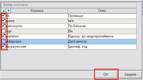 * Для того, щоб редагувати порядок розміщення колонок, нажимаємо на першу кнопку "Вибір колонок"