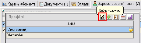 далі, у вікні "Профілі" нажимаємо на кнопку "Вибір колонок",