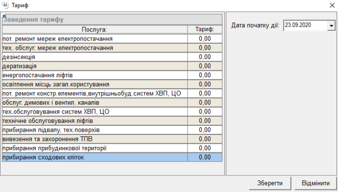 у вікні "Тариф" проставити нові тарифи, вибрати дату початку дії та натиснути "Зберегти"