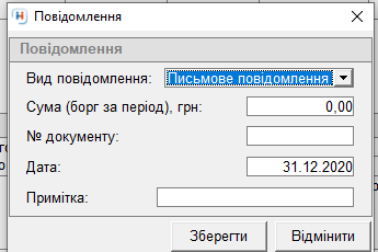 - Заповнити "Сума (борг за період), грн" - для письмового повідомлення, претензії, вимоги