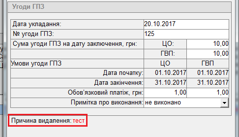Якщо запис "УгодиГПЗ" було створено помилково, його можна видалити, для цього: