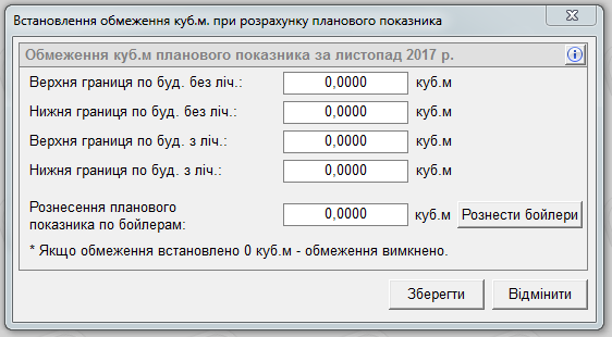 відкриється вікно "Встановлення обмеження куб.м при розрахунку планового показника":