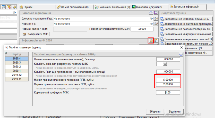Далі вказати верхні та нижні границі по будинкам з буд. лічильником та по будинкам без буд. лічильників та нажати кнопку “Зберегти”