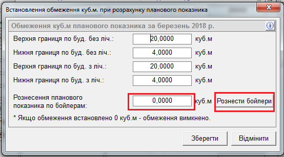 "Рознесення планового показника по бойлерам"- скільки кубів потрібно рознести по бойлерам