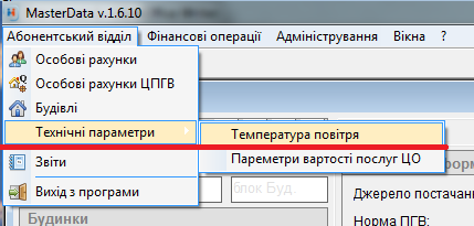 Потрібно відкрити даний пункт меню → "Абонентський відділ" → "Технічні параметри" → "Температура повітря"