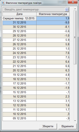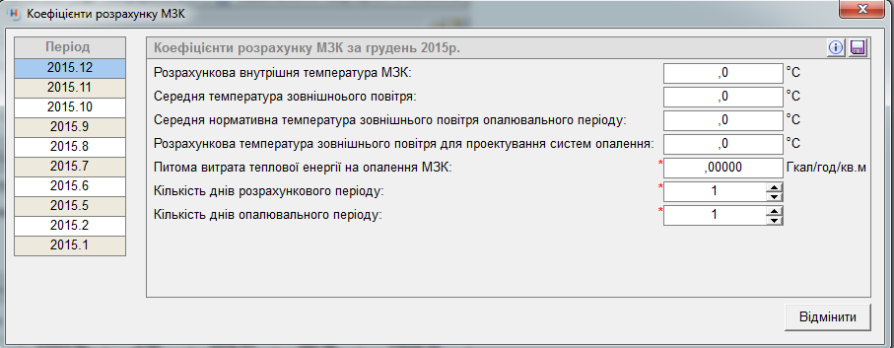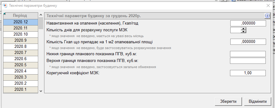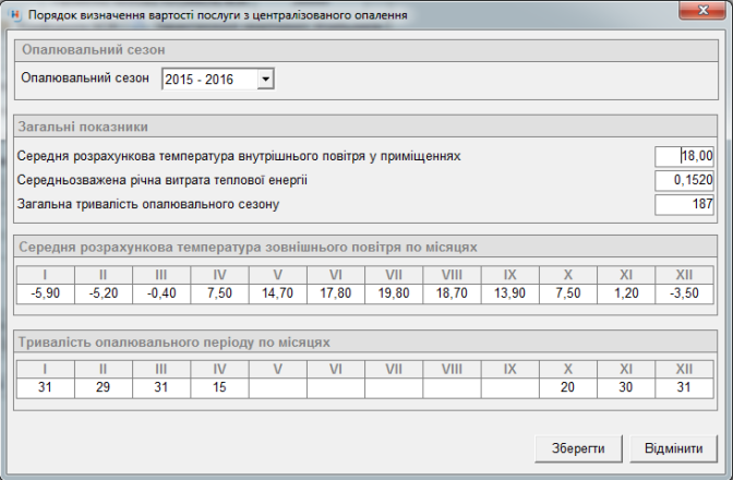 Занесення параметрів для нарахування, по постанові 630 "Про запровадження перерахунку вартості послуги з централізованого опалення залежно від температури зовнішнього повітря"