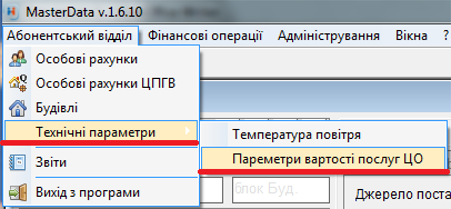 Потрібно відкрити даний пункт меню → "Абонентський відділ" → "Технічні параметри" → "Параметри вартості послуг ЦО"