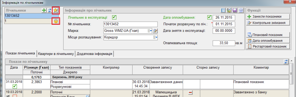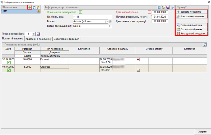відкриється вікно, у якому можна додавати лічильники та показники по ним: