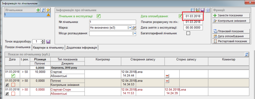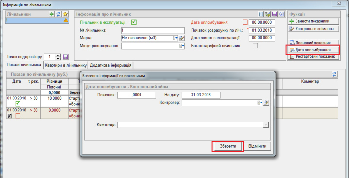 Для того, щоб поставити дату опломбування, нажимаємо "Дата опломбування"