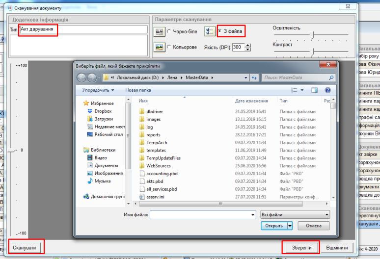 Збереження сканованих документів у Роботі з особовими рахунками:
