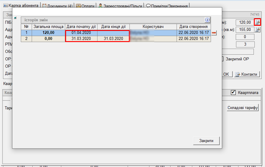 Збереження інформації по періодам (загальна площа, опалювальна площа, проживаючі)