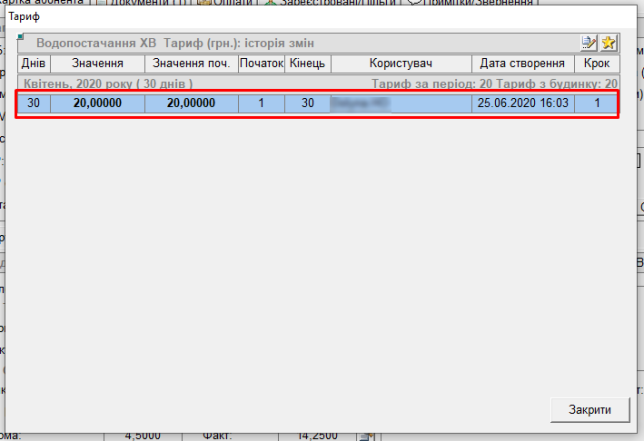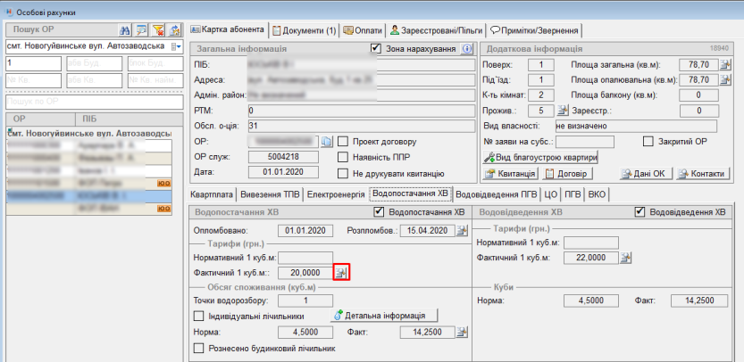 Відкрити потрібну послугу - натиснути кнопку "лупа" біля Фактичного тарифу