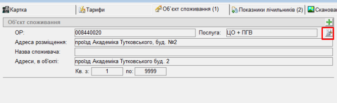 - у "роботі з будинками" перейти на потрібний будинок , далі на вкладку "Об'єкт споживання"