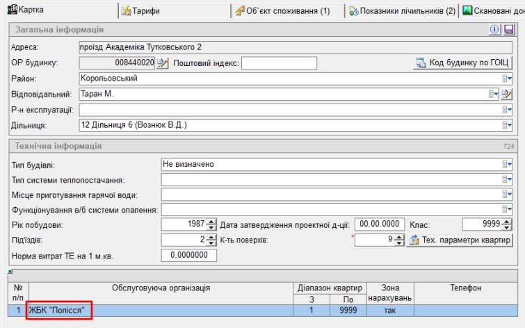 в картці будинку Академіка Тутковського 2 тепер відображена обстуговуюча організація "ЖБК Полісся"