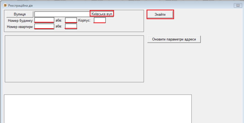 - далі потрібно заповнити потрібні поля (номер будинку (якщо є, то ще букву будинку), корпус, номер квартири (якщо є, букву квартири)), район і нажати кнопку "Знайти"