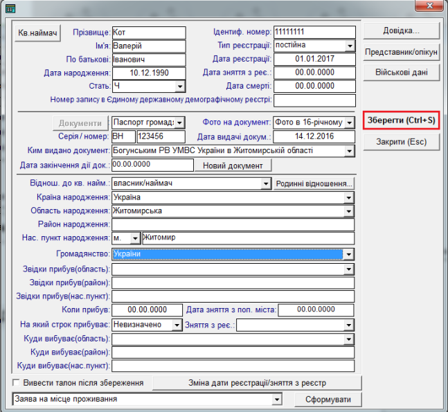 - далі у даному вікні заповнити всю відому інформацію, і нажати кнопку "Зберегти"