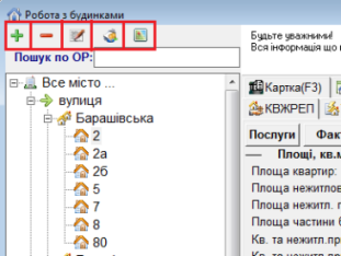 Кнопка "-" - видалити будинок. Для видалення будинку, спочатку потрібно вибрати потрібний будинок, та нажати кнопку "-"
