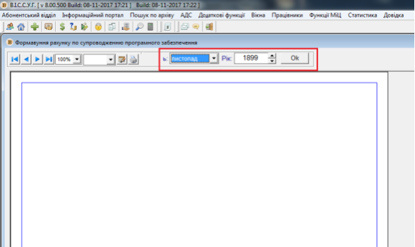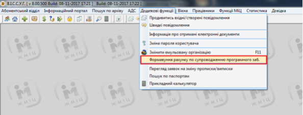 При виборі "Формування рахунку по супроводженню програмного заб." відкриється вікно: