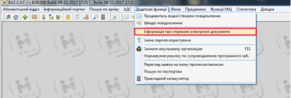 Для отримання інформації необхідно зайти в меню: "Додаткові функції" - "Інформація про отримані електронні документи":