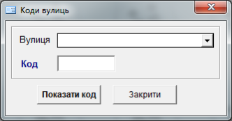 У вікні потрібно вказати назву вулиці та нажати кнопку "Показати код"