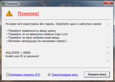 Якщо при підключенні система видала помилку, уважно прочитайте зміст повідомлення, виконайте пункти які в ньому вказані.