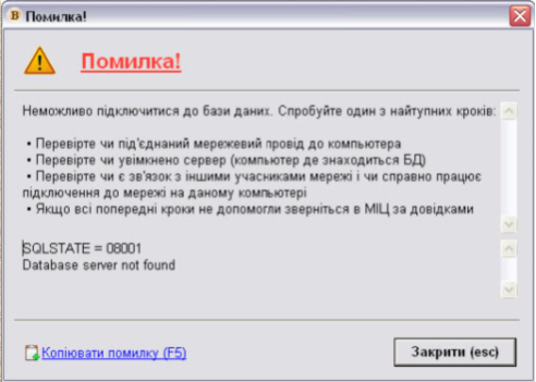 Якщо з'являться інші помилки, скопіюйте зміст цієї помилки ("Копіювати помилку" - ця кнопка скопіює зміст повідомлення помилки в буфер) або зробіть знімок екрану (натиснувши на клавіатурі клавішу "Print Screen"), відкрийте програму Paint (стандартний графічний редактор), вставте рисунок і збережіть його на комп'ютері. Далі надішліть цей файл до МІЦ, описавши як саме виникла помилка.