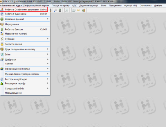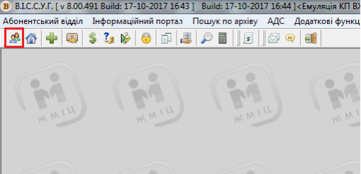 Для початку роботи з особовими рахунками натисніть CTRL+A, або виберіть пункт меню: "Абонентський відділ" - "Робота з особовими рахунками"; або нажміть відповідну кнопку на панелі інструментів: