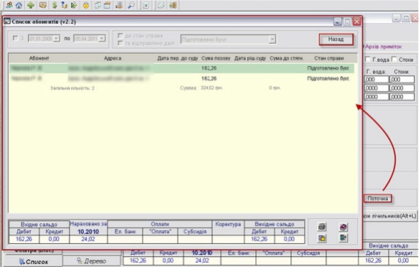 Для перегляду всіх справ по одному абоненту нажміть кнопку "Поточна" в розділі "Справи", будуть показані всі справи по виділеному абоненту. Фільтрація в даному режимі не активна.