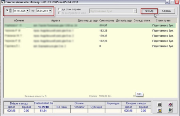 Примітка! Можна застосовувати фільтр по даті та фільтр за станом справи одночасно