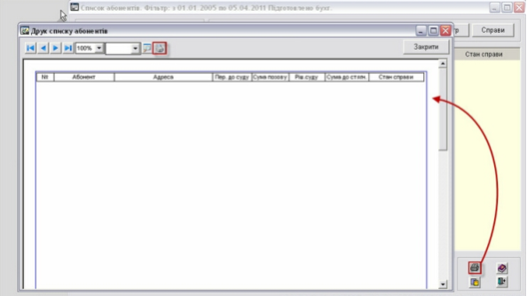 Для роздрукування потрібного списку нажміть кнопку "друкувати" у нижній частині вікна "Список абонентів". Для друку у вікні "Друк списку абонентів" нажміть кнопку "Друкувати", для повернення до попереднього вікна натисніть кнопку "Закрити".